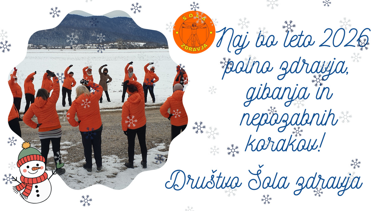 V prvih dveh mesecih leta 2026 Društvo Šola zdravja podarja brezplačno jutranje razgibavanje, ki bo potekalo preko platforme Zoom. Vadba bo na voljo od 5. januarja do 27. februarja, vsak delovni dan od 8. do 9. ure.